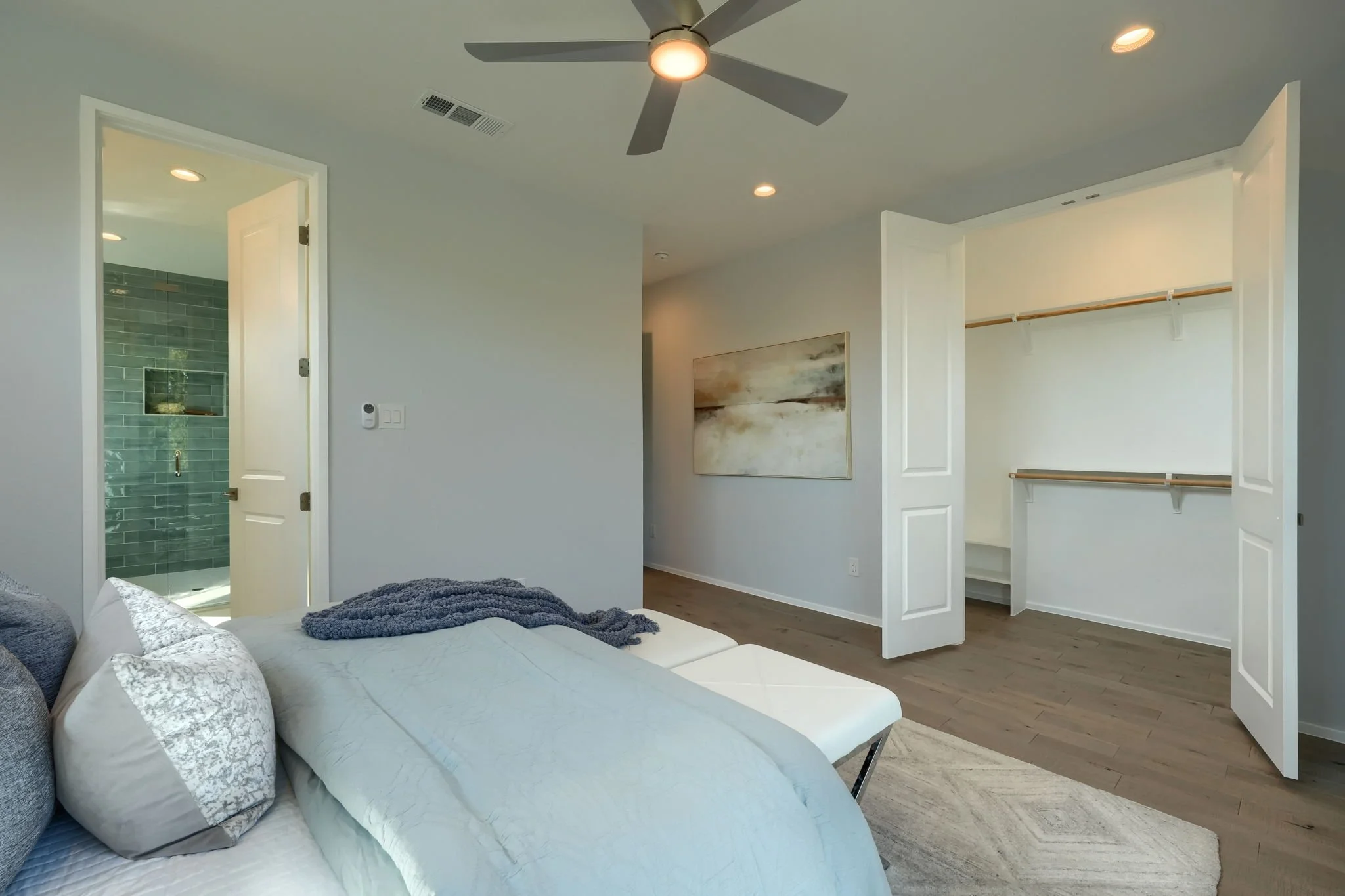 Gated tree-lined and landscaped walkway to a private gated patio for each townhome;